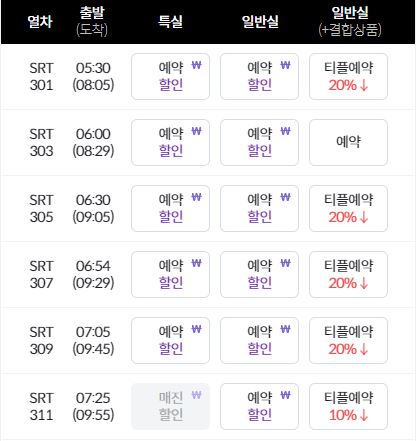 | SRT Early | 최대 30% | 출발 7일 전 예약 |